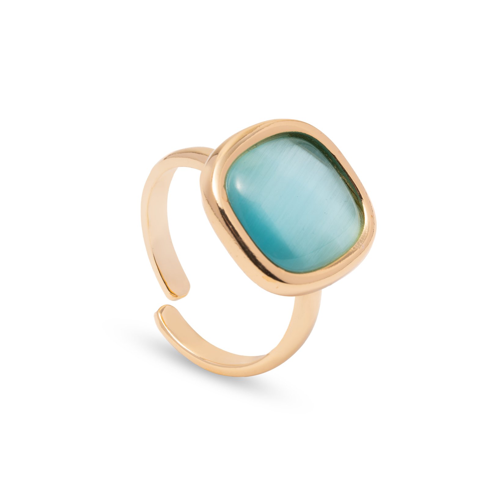 Anello placcato oro 18kt collezione Marie Cloe con fantasia pietra quarzo colorazione Celeste, creato a mano nei laboratori BLIND LAB da esperti artigiani orafi