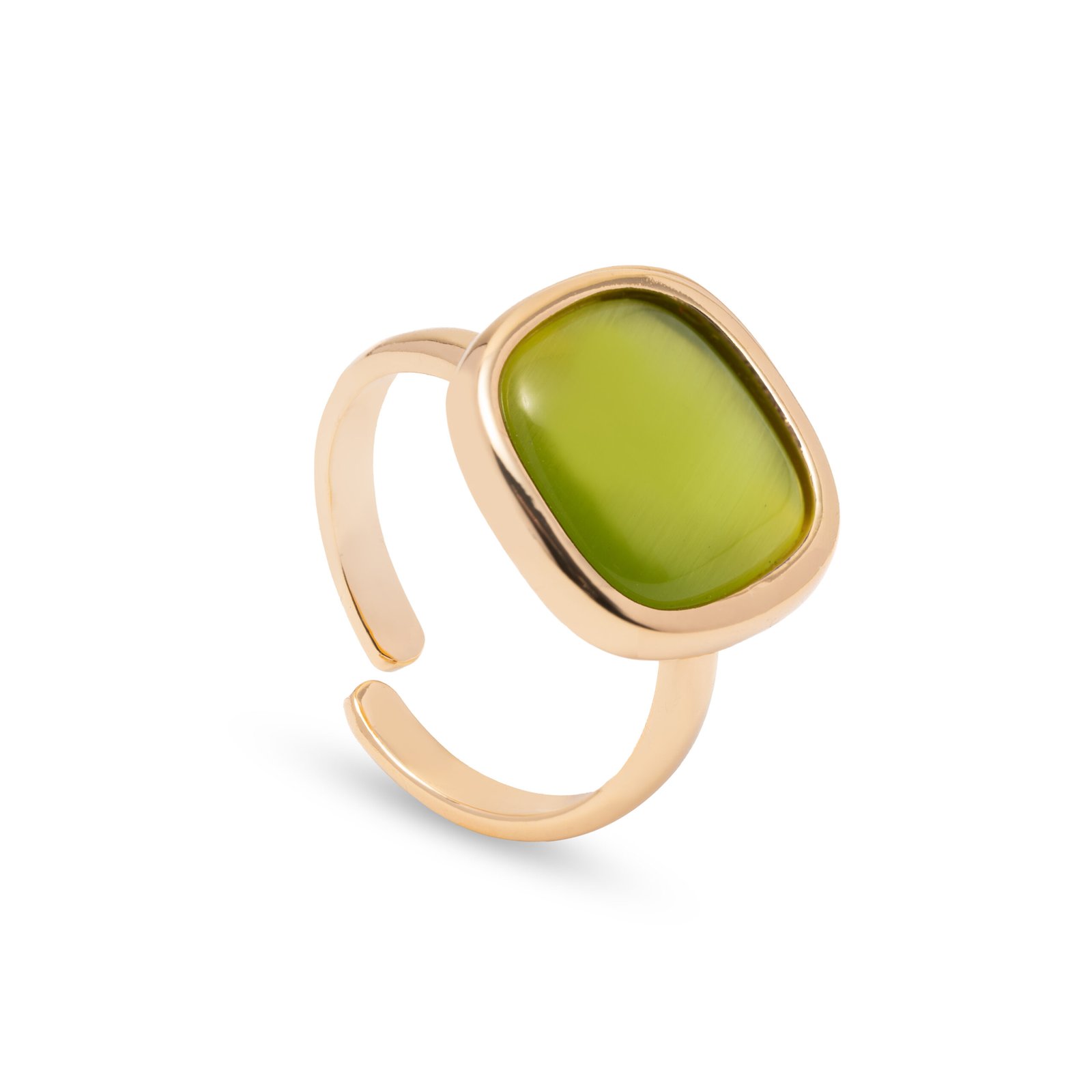 Anello placcato oro 18kt collezione Marie Cloe con fantasia pietra quarzo colorazione Verde Chiaro, creato a mano nei laboratori BLIND LAB da esperti artigiani orafi