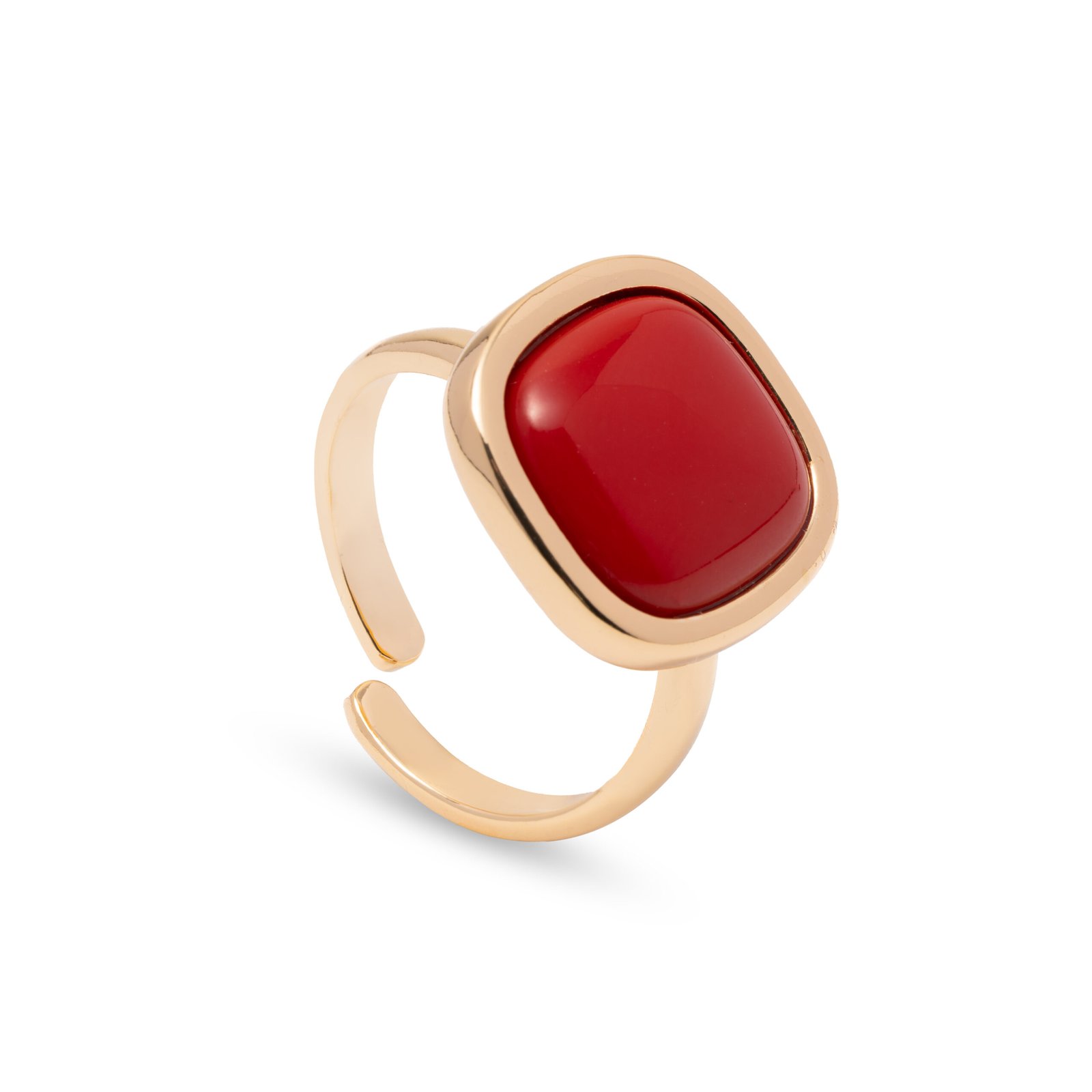 Anello placcato oro 18kt collezione Marie Cloe con fantasia pietra quarzo colorazione Rosso, creato a mano nei laboratori BLIND LAB da esperti artigiani orafi