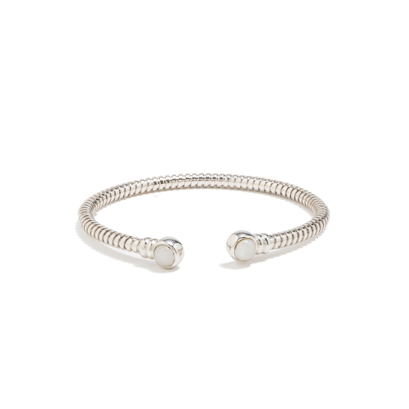 Il Bracciale White Flow abbina la finitura argento a due pietre chiare dall’effetto brillante e delicato.