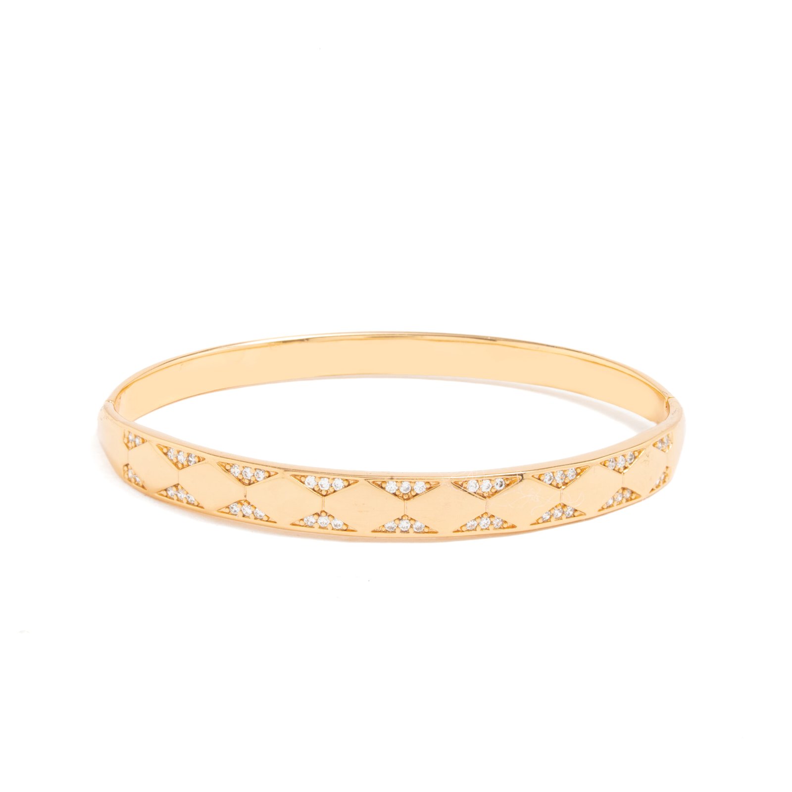 Bracciale placcato oro 18kt collezione Your Aura – Bronze chiuso liscio con mini triangoli su i bordi ricoperti da zirconi colorazione Bianco, creato a mano nei laboratori BLIND LAB da esperti artigiani orafi