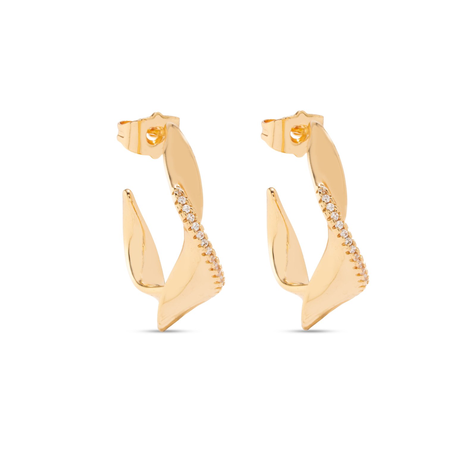 Coppia di Orecchini placcati oro 18kt collezione Your Aura – Bronze cerchi organici, scultorei ricoperti parzialmente con pave zirconi colorazione Bianco