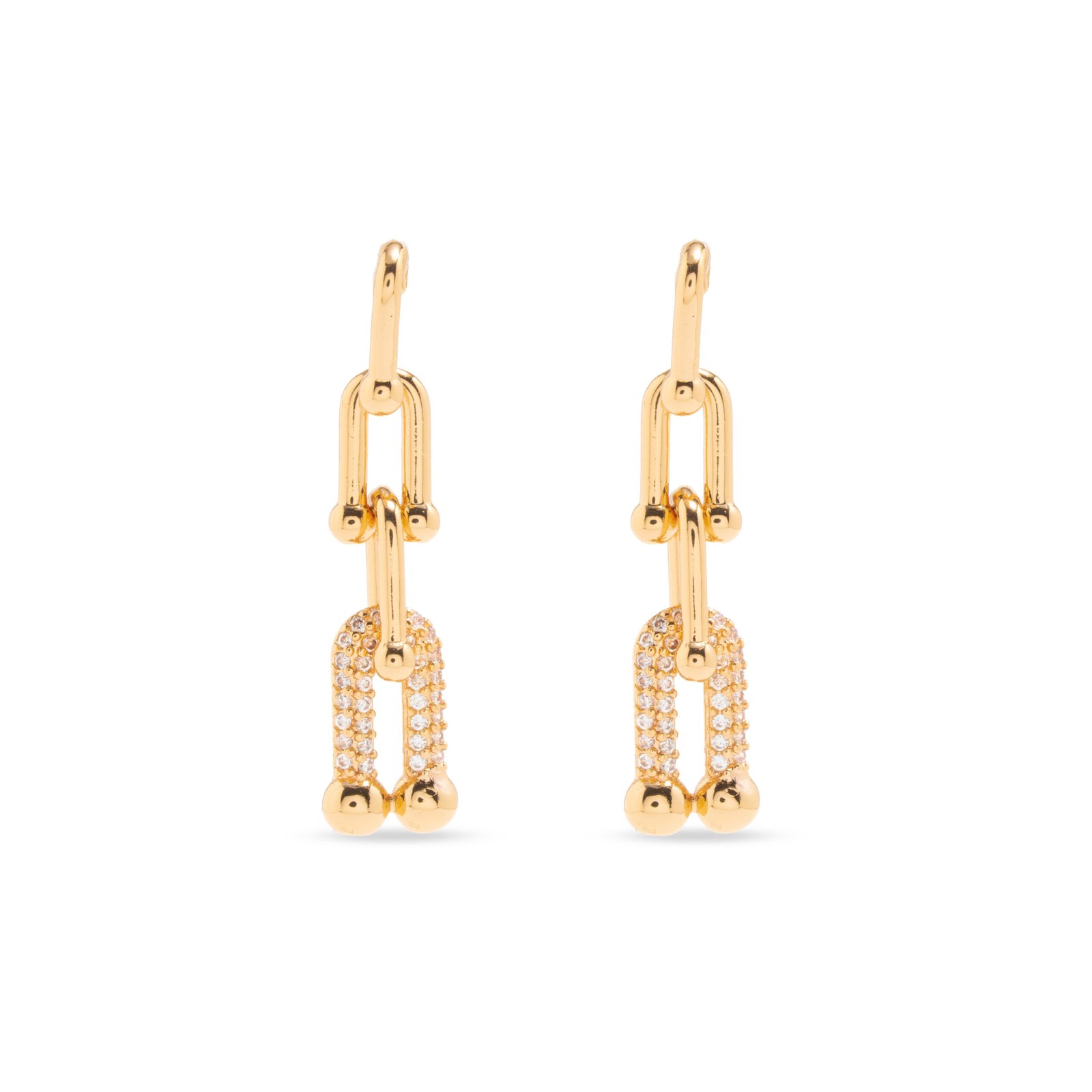 Coppia di Orecchini placcati oro 18kt collezione Your Aura – Bronze maglie allungate con pave zirconi colorazione Bianco, creati a mano nei laboratori BLIND LAB da esperti artigiani orafi