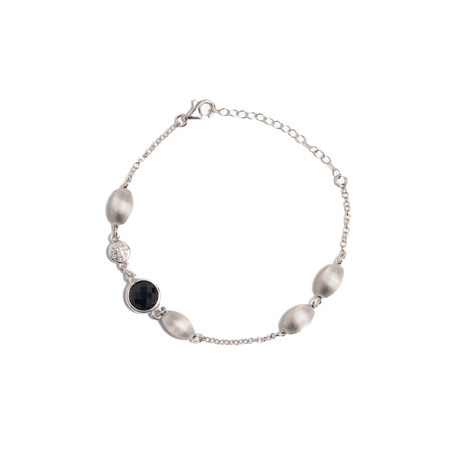 Bracciale in Argento 925 collezione Crystal Ag 925 con fantasia pietra cristallo colorazione Nera, ovaline in Ag 925 satinate e pallina in Ag 925 zirconata creato a mano nei laboratori BLIND LAB da esperti artigiani orafi