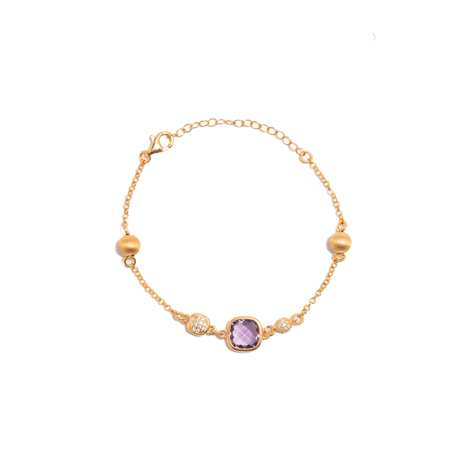 Bracciale in Argento 925 collezione Your Aura – Silver Ag 925 con fantasia mini quarzo con pietra cristallo colorazione Viola e ovaline satinate in Ag 925 creato a mano nei laboratori BLIND LAB da esperti artigiani orafi