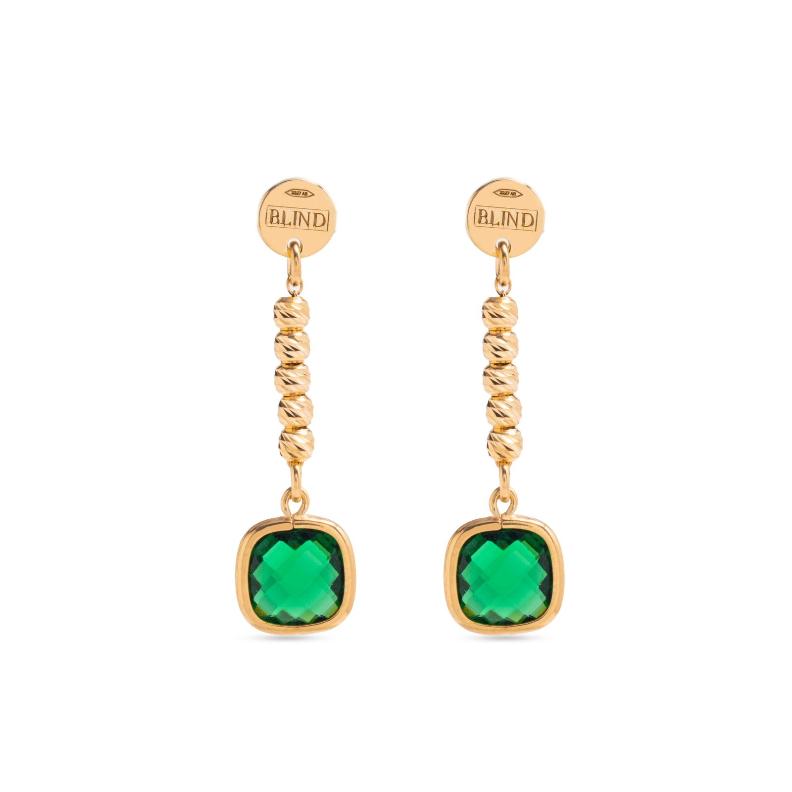 Coppia di Orecchini in Argento 925 collezione Your Aura – Silver Ag 925 con fantasia due mini quarzi quadrati con pietre cristallo con colorazione Verde Cristallo creati a mano nei laboratori BLIND LAB da esperti artigiani orafi