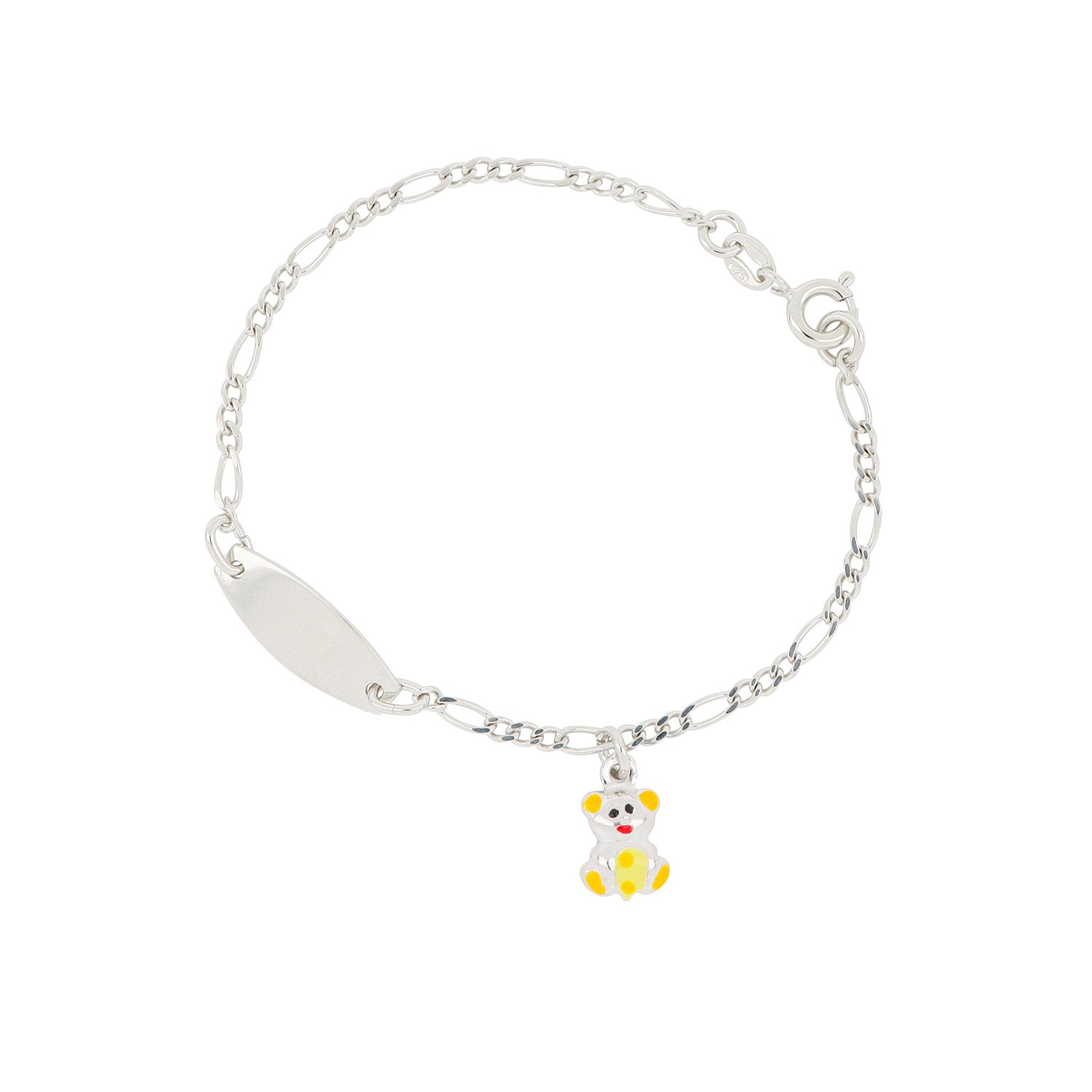 Braccialetto realizzato in AG 925% collezione BAMBINI (KIDS) misurazione standard per bambini\bambine con simbolo smaltato Orsacchiotto + piastra